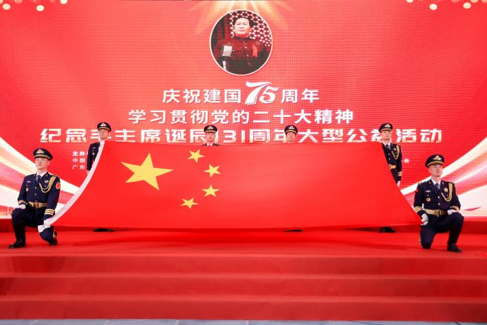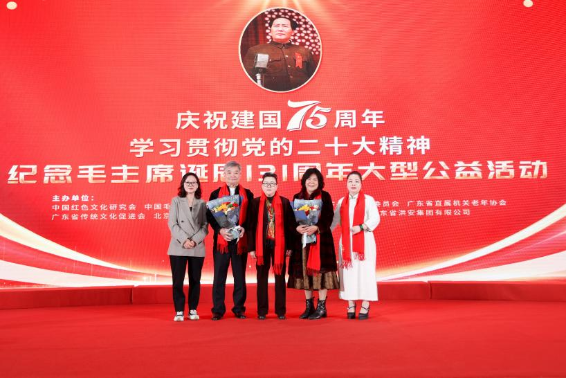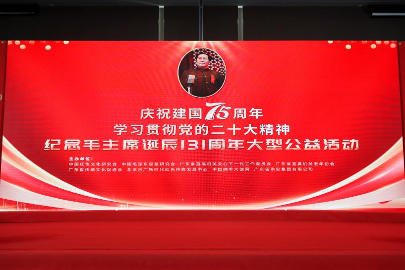 为传承红色基因,牢记历史使命,大力弘扬伟大的毛泽东思想,中国红色文化研究会、中国毛泽东思想研究会、广东省直属机关关心下一代工作委员会、广东省直属机关老年协会、广东省传统文化促进会、北京京广新时代红色传媒发展中心、中国拥军大使网以及广东省洪安集团有限公司共同举办的“庆祝建国75周年,学习贯彻党的二十大精神,纪念毛主席诞辰131周年”大型公益活动,于2024年12月22日,在广州黄埔·知识城会展中心隆重举行。